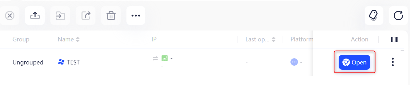 1. In Profile Management, find the profile you created.2. Click Open under the Tags section to launch the browser with your configured proxy.