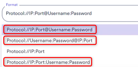 Format,Protocol, andPing Filter.Oculus Proxies need login credentials, so be sure to select a filter option that supports both a username and password - You can either paste a single proxy into the textbox or upload multiple proxies using the Import Proxy button with a