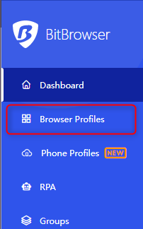 1. On the home screen, click on the Browser Profiles tab.2. This section allows you to create and manage browser profiles.