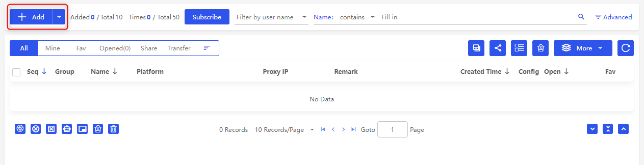 1. Click the + Add button to create a new browser profile.2. Customize the profile settings according to your needs.