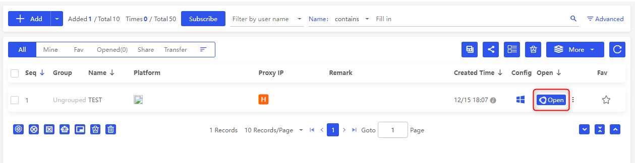 1. After saving the profile, click Open to launch the browser with your configured proxy settings.2. Visit an IP-checking website (e.g., ipinfo.io) to confirm that your proxy is active.