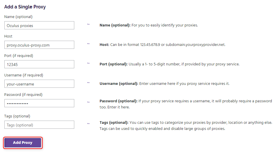 - Name (Optional): Add a custom name (e.g., “Oculus Proxy”).