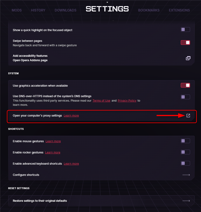 Find and click on Open your computer’s proxy settings.