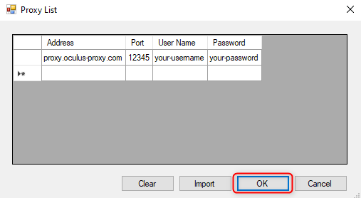 - Password: Input your Oculus Proxy password.