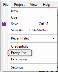 1. In the Helium Scraper menu, navigate to File > Proxy List.2. This will open the proxy configuration panel.