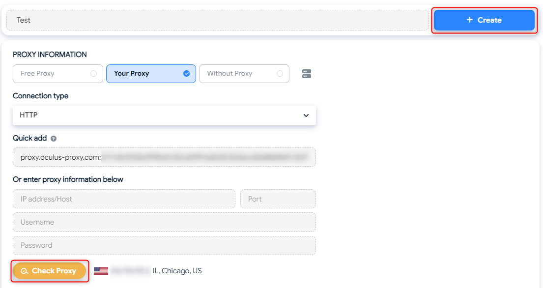 1. Log in to your Oculus Dashboard.2. Click Show Configured List under the Generic tab to copy your proxy details.3. Paste the proxy information into the Quick add field in HideMyAcc.4. Click Check Proxy to test the connection.5. Once verified, click Create to save your settings.