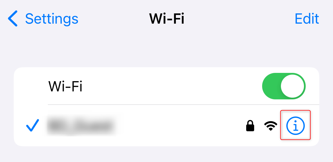 1. Open the Settings app on your iOS device.2. Tap Wi-Fi and find your connected network.3. Tap the i (information) icon next to the network name.
