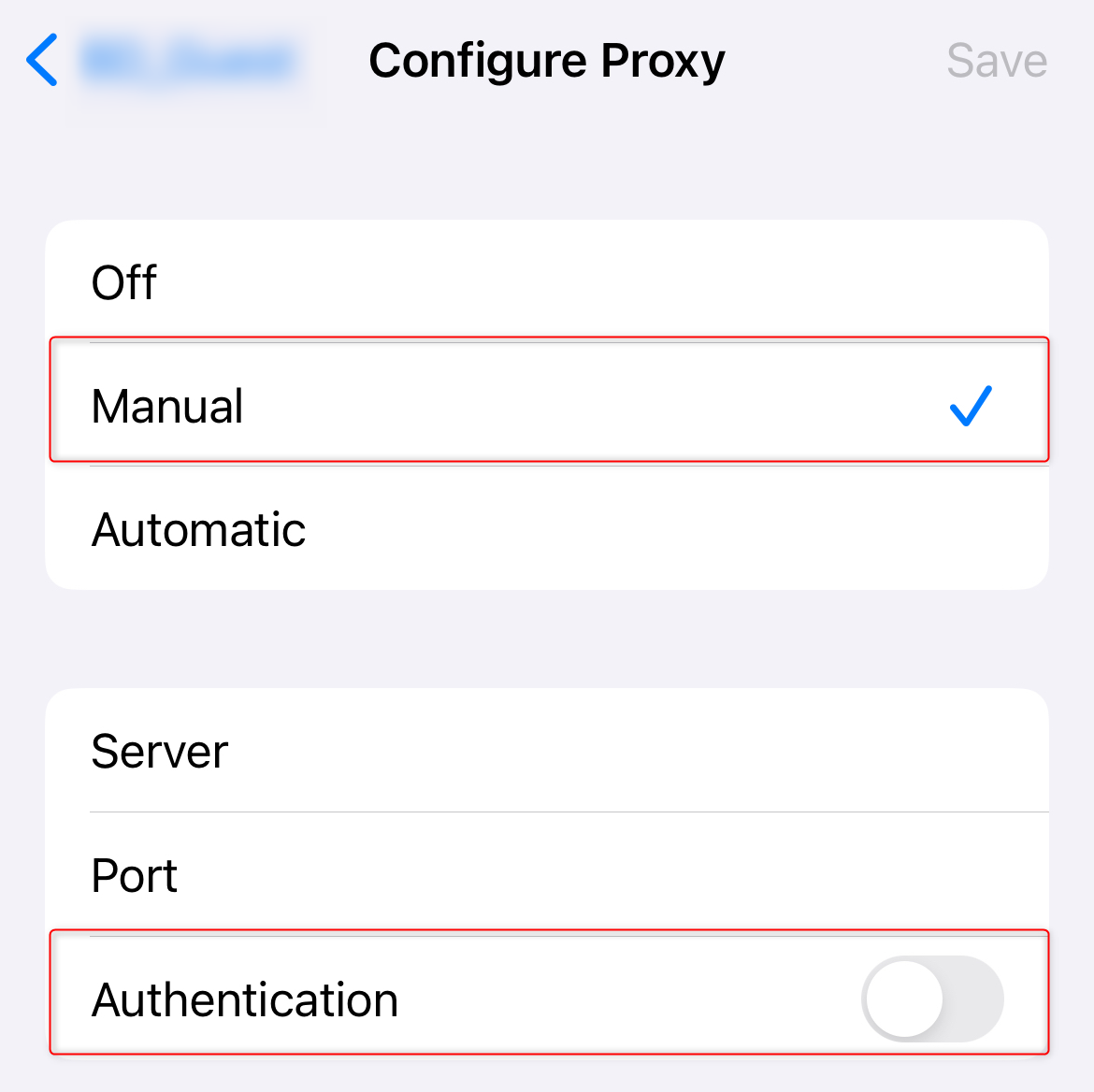 1. Scroll down to the HTTP Proxy section.2. Select Manual to enable custom proxy settings.3. Toggle Authentication to On.