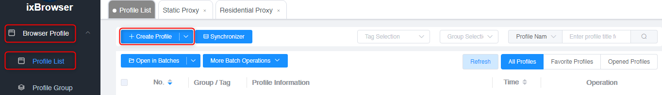 1. Go to the Profile List section under Browser Profile.2. Click Create New Profile to start setting up a browser instance.3. Assign a unique name to the profile in the Profile Name field for easy identification.