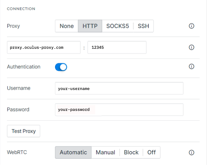 - Username: Your Oculus proxy username.