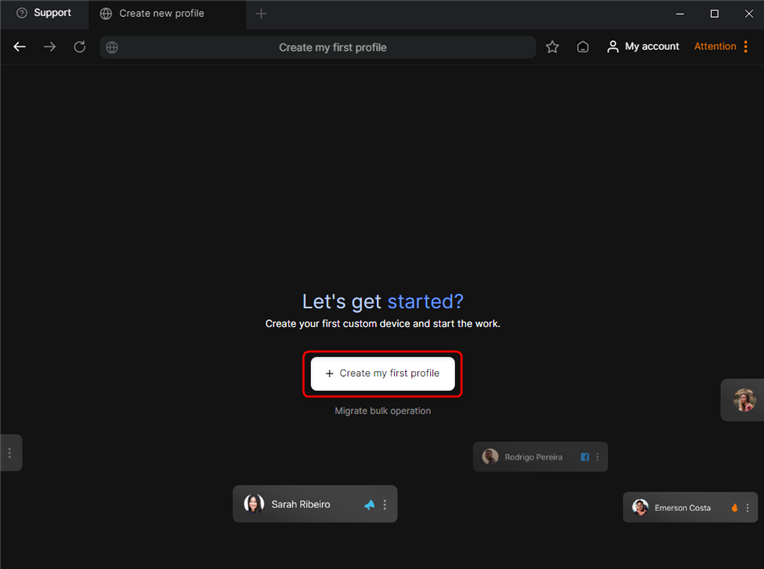 Open Lauth Browser and click Create my first profile to set up a new browsing session.