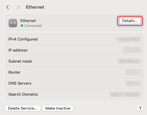 1. Click Details⌠(or AdvancedâŚ) in the bottom-right corner of the Network window.