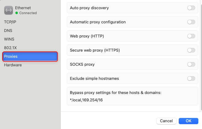 2. A new window will appear. Select the Proxies tab from the menu on the left.