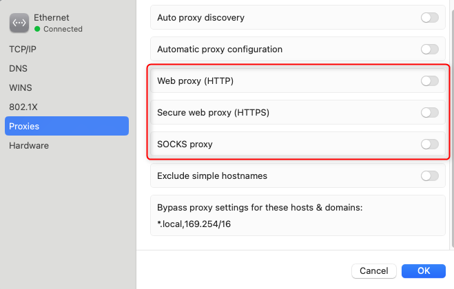 1. In the Proxies tab, check the box next to the type of proxy you want to configure: