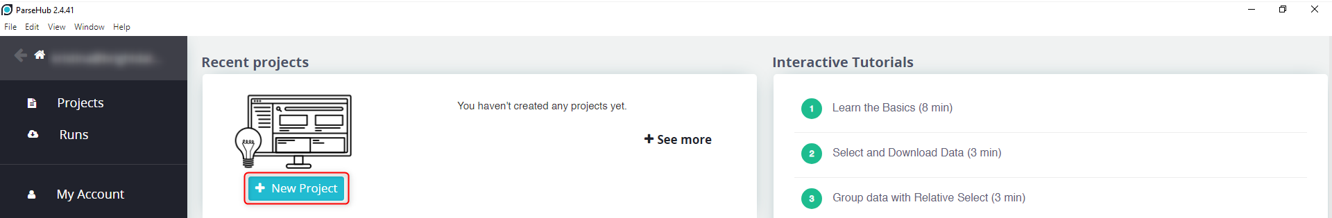 1. Open ParseHub on your desktop or log in to the web app.2. Click New Project and enter the URL of the website you want to scrape.