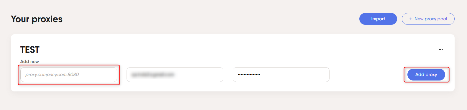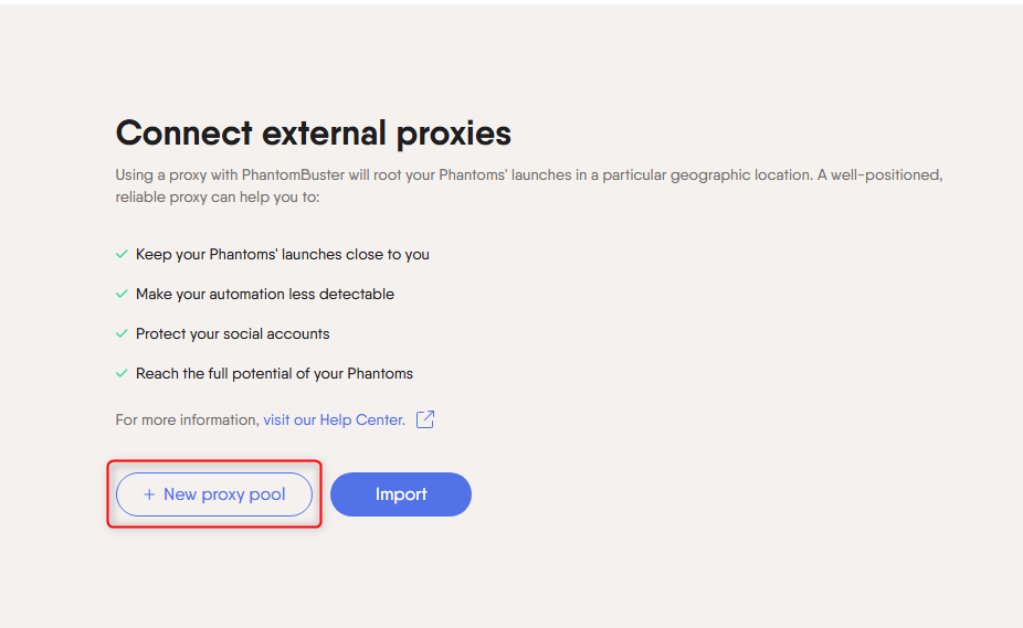 1. Click the New proxy pool button to create a new pool for your proxies.