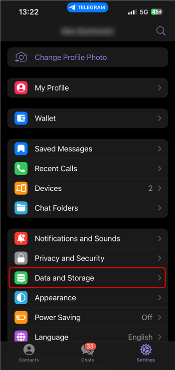Open the app and go to Settings tab, then navigate to Data and Storage.