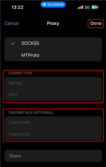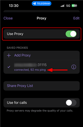 Don’t forget: Use only port 31115 since Telegram supports only SOCKS5