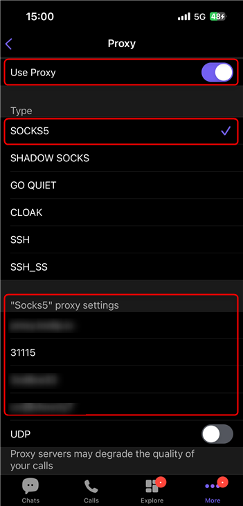 Restart the app by closing and reopening, to apply the changes and connect to the proxy.