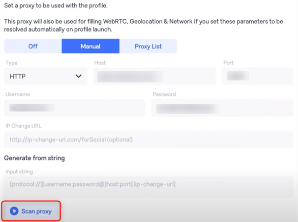 If the connection is successful, the proxy details will appear next to the Scan Proxy button.