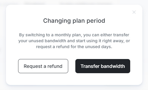 - Receive a refund - Get a refund for the unused days of your current plan and switch to a monthly subscription.