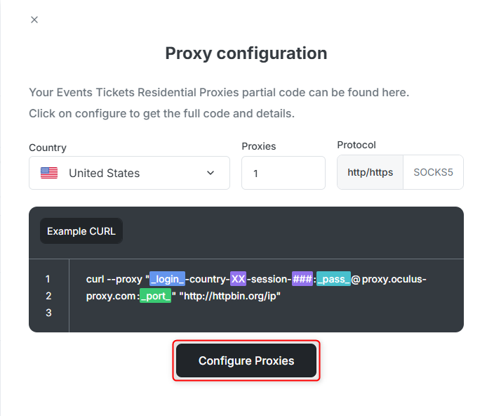 Choose your preferences, like Country, number of Proxies and Protocol and press Configure Proxies.